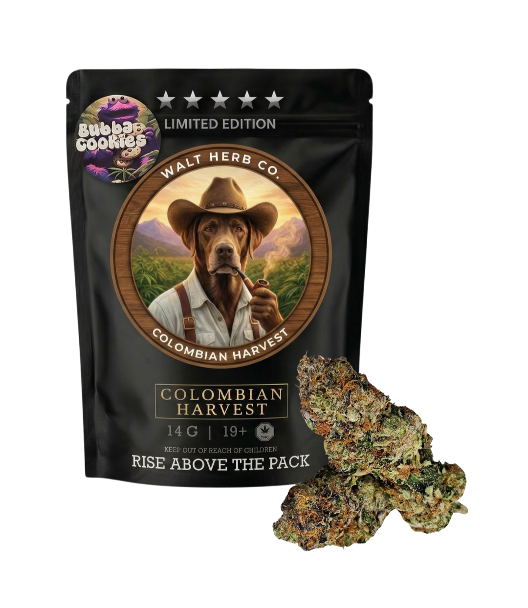 Experience the “Colombian Harvest” with Walt Herb Co. Bubba Cookies. A 38% THC heavy Indica cross of Bubba Kush & GSC. Same-day weed delivery in Milton, Georgetown, and Caledon.Image Tag: bubba-cookies-limited-edition-38-percent-thc-craft-cannabis-delivery